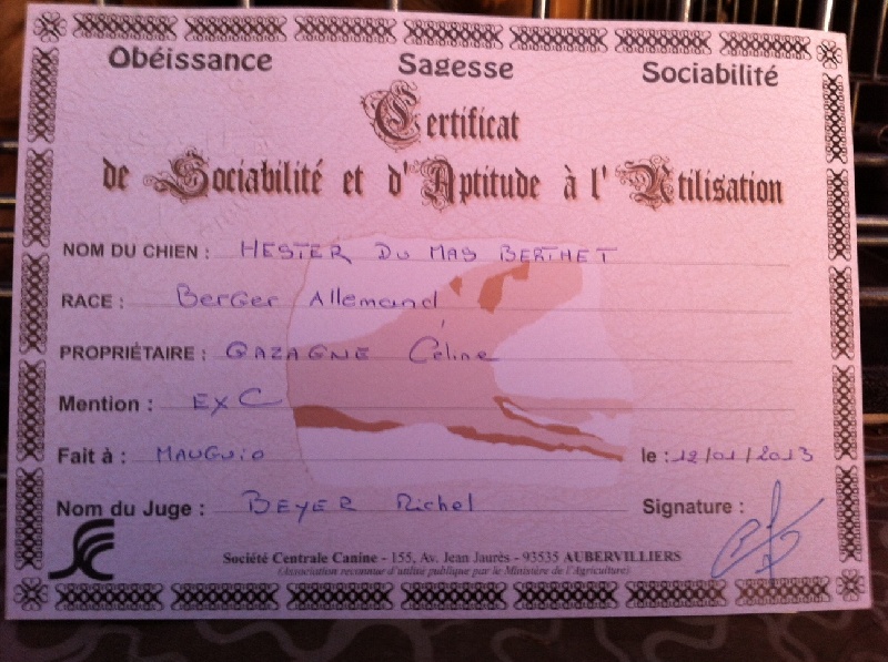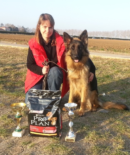 Classe Junior (12/18) - Femelle - Poils LongsTrès bons commentaires du juge sur la morphologie d'Hesther (Taille, Garot, Ligne de dos, prise de terrain).Commentaire spécial sur le caractère "une chienne très fixée sur son maître, un beau BA c'est bien mais c'est un bon chien de famille aussi"
