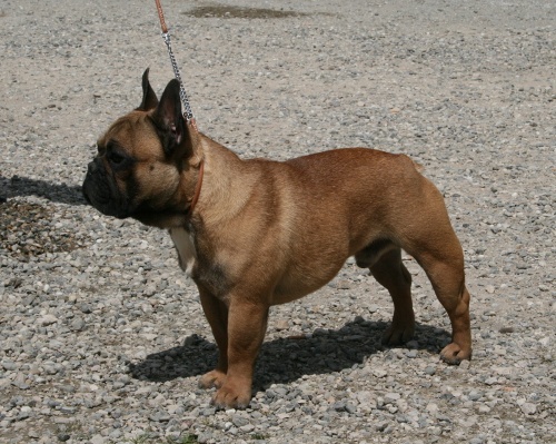 Joli sujet compact, TB ligne de dos, queue correcte, TB proportions générales, coudes au corps, tête masculine, oreilles bien portées, bien placées, TB articulé, TB mouvement