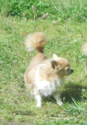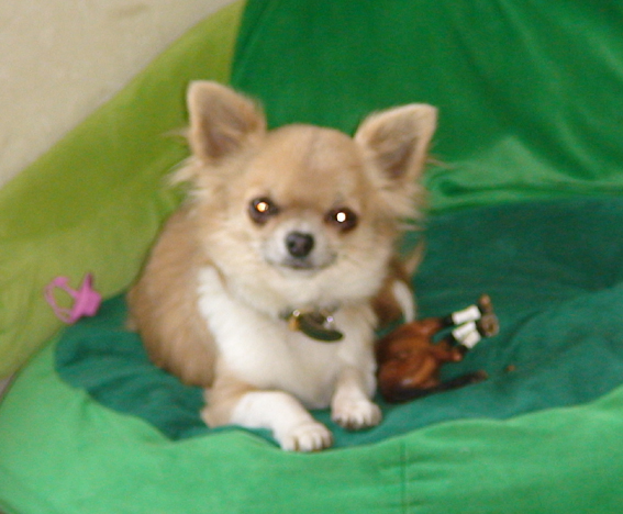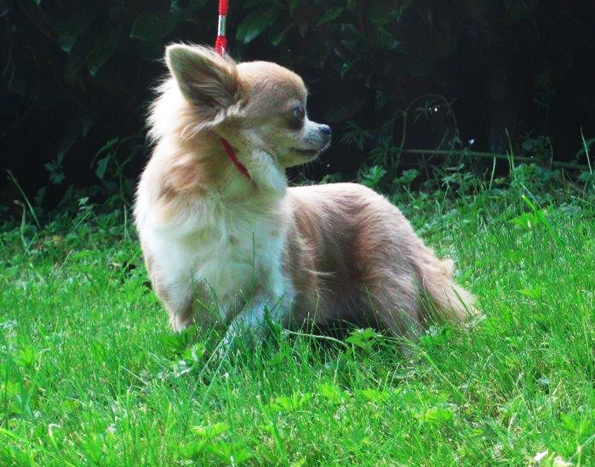 Notre Joyce est une irréductible. Fidèle à sa famille, elle snob tout simplement les visiteurs. Joyce ne m'a donné que des petites merveilles de Chihuahuas avec son chéri Gangster. C'est un amour de discrétion et de délicatesse princière...