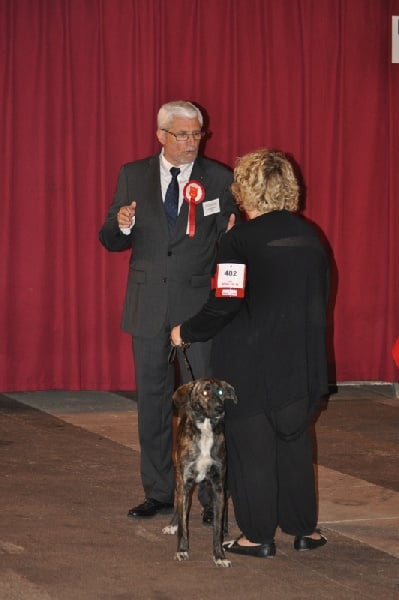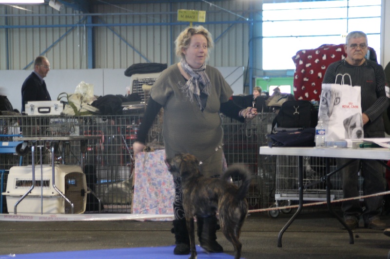 Mouvement bon . Excellentes angulations . Bonne ossature .Bon rapport avec son maîtreExcellente expression féminineBonne ligne de dosExcellente couleur tigrée