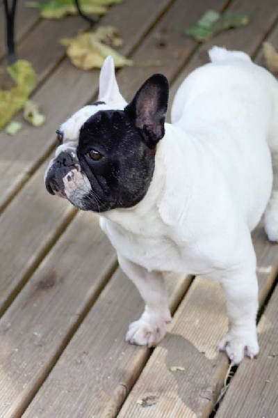 12kg500 - belle robe bien blancheCompact forte ossaturepoitrail bien ouvertDoit affermir ses métacarpesJarrets marquésLa poitrine doit encore se développerDessus horizontalJolie tête - Exc crâne, oreilles, stopTruffe bien remouchée - mâchoires bien jointéesRides typiquesun peu long - Serre devant