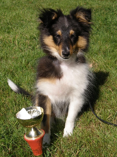 Taille : 35 cm. DCCAspect général : Joli petit sujet, très seyant, avec des feux bien vifs.Tête : Superbe tête très expressive, avec Exc rapport crâne/chanfrein et Exc parallélisme. Bel œil.Corps : Corps d'athlète, bien musclé malgré une ossature un peu fine, en rapport avec la taille.Allures : De jolies allures typiques.Point négatif : Chienne qui gagnerait à prendre confiance en elle.Point positif : Superbe petit sujet très harmonieux.