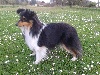 Tricolore. 4 mois. Très pétillante et très curieuse. L'ossature pourrait être plus puissante. Beaucoup de menton et une mâchoire déjà en tenaille. Petite tête mignonne, très bien typée. Encore très petite souris en déplacement.