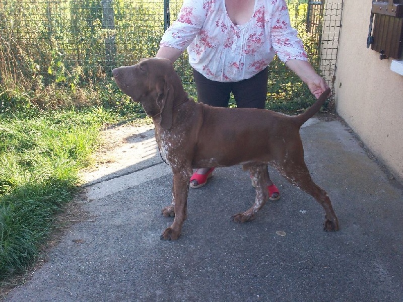 Jeune mâle marron-métallique , calme -posé-bien dans sa tête - prédisposition innée à chasser , mais n'a pas encore eut d'opportunité pour le démontrer...faute de meneur-chasseur , "et ne chassant pas moi-même". Beaucoup de type et de noblesse dans son maintien : 0,64 cm/ 38 kgs -grande gentillesse- à l'aise dans les concours de Beauté - obéissance -aime les enfants , très câlin . Apte à la reproduction .
