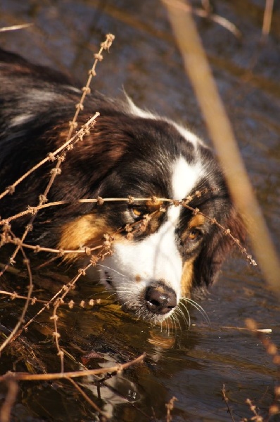 C'est également une excellente nageuse et une chienne très respectueuse des bêtes, elle n'aime pas quand les choses s'agitent et se fixe rapidement dans sa tâche donnée.