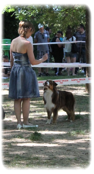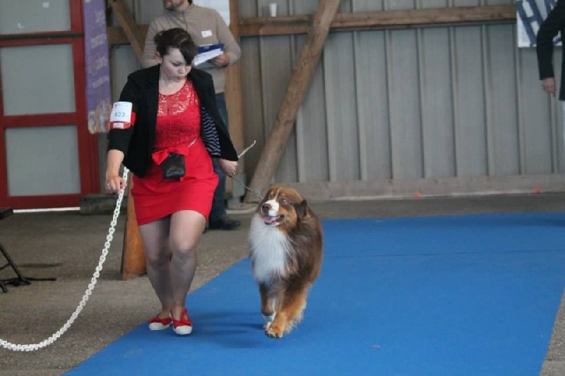 CLASSE OUVERTE : Nash a terminé dans les 9 chiens selectionnés de sa classe.DCC tête bien masculine, très expressif, exc ossature, TB proportion exc ligne de dos, B croupe, EXC angulations AV + AR Exc ampli Exc mouvement dynamique. PRESENTTATION ma nièce Noémie et moi même .