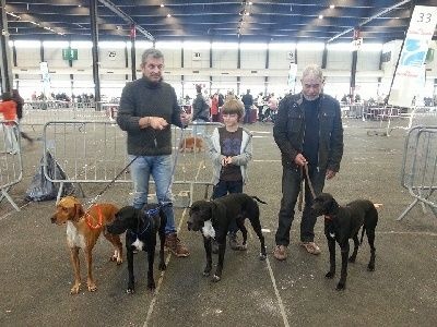 La famille Des Lagunes De Sable Noir était représenté par 7 chiens :-Elfy de la source des serpents:-3ème excellente classe ouverte femelle -Meilleur lot reproducteur -Meilleur lot d'élevage La production Elfy ( étalon Nabb Ayrton ou Cavour de la garenne d'armagnac):- Haka des lagunes de sable noir: 1er excellente jeune femelle Meilleur jeune d'exposition, elle sera présenté à deux reprises sur le ring d'honneur de l'après-midi... -HURLEY DES LAGUNES DE SABLE NOIR, 1ER EXCELLENT JEUNE MÂLE, 2ÈME JEUNE-HERMÈS DES LAGUNES DE SABLE NOIR, 3ÈME EXCELLENTE CLASSE INTER MÂLE -H'ÉROS DES LAGUNES DE SABLE NOIR, 4ÈME EXCELLENTE CLASSE INTER MÂLE-HUKA DES LAGUNES DE SABLE NOIR, EXCELLENT NON CLASSÉ INTER FEMELLE - HAYA STONE, EXCELLENT NON CLASSÉ, INTER FEMELLE...J'AURAIS TANT CRU EN ELLE! TOUS SES CHIENS ONT ÉTÉ ÉGALEMENT CONFIRMER, MAINTENANT PLACE AU TAN ET A LA NATIONALE D'ÉLEVAGE!!!CE FUT UNE BONNE JOURNÉE ASSEZ TENDU DE MON COTÉ DÛ À MON PETIT RETARD MAIS ON S'EN EST SUPER BIEN SORTI!VRAIMENT UN GRAND MERCI A TOUS LES PROPRIÉTAIRES D'ÊTRE VENU PRÉSENTER LEUR COMPAGNON ET PAR L'OCCASSION REPRÉSENTER MON "PETIT ÉLEVAGE FAMILIALE!! VOTRE PRÉSENCE ET SES MOMENTS DE CONVIVIALITÉ PASSÉS AUTOUR DE CETTE RACE SONT POUR MOI UN SIGNE DE SATISFACTION EN VERS VOTRE COMPAGNON ET ÇA ME SERT BEAUCOUP DE SAVOIR CE QUE "MA LIGNÉ" PEU APPORTÉ DE POSITIF A LA RACE"! SANS CETTE ENSEMBLE, JE N'Y TROUVE AUCUN BUT ET JE COMPTE BIEN CONTINUER À ÉVOLUER DANS CE SENS-LÀ! DONC ENCORE MERCI ET AU PLAISIR