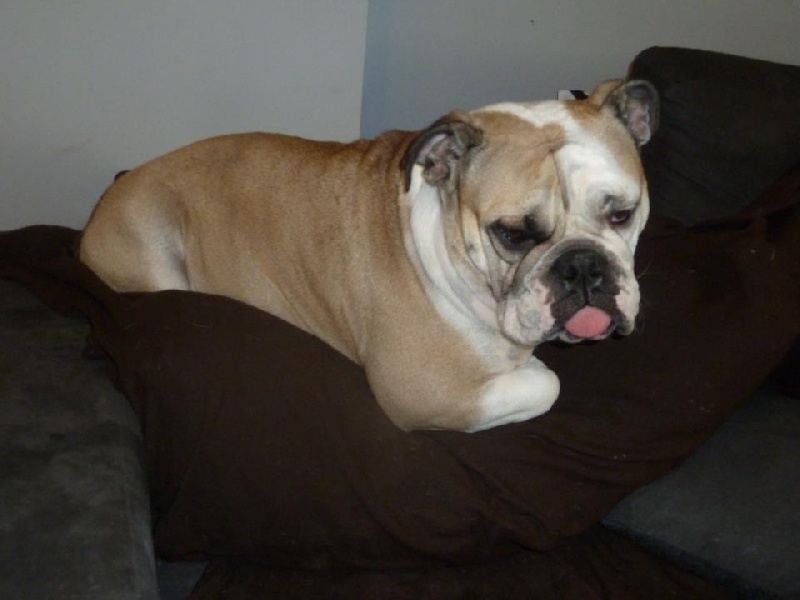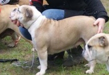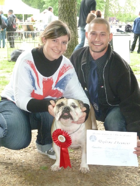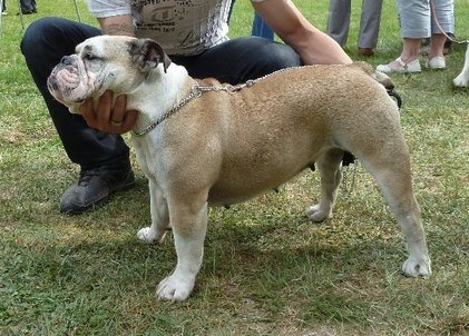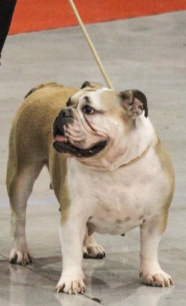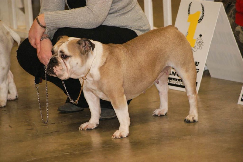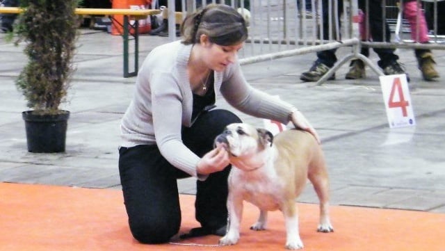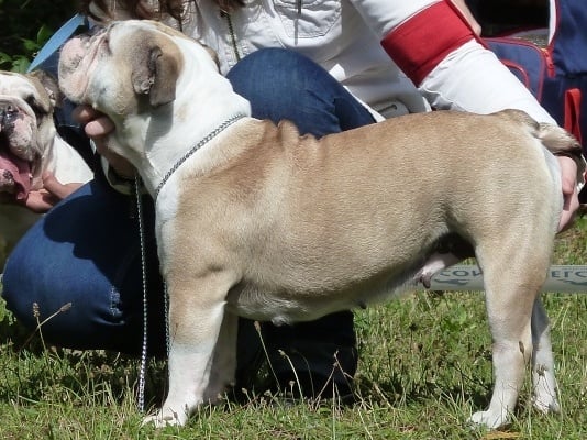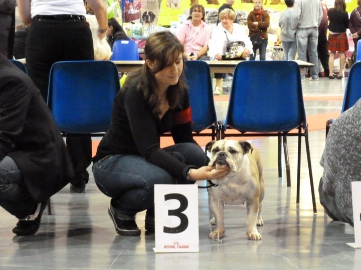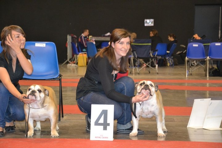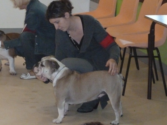classe ouverte femelle (6 bulldogs)bonne mandibule avec bon prognathisme. chanfrein un peu long. oreille bien portée, bon crâne, oeil sombre, tb ossaturele pied pourrait être plus serré, poitrine bien descendu, arrière main bien musclé avec R. solide. dos un peu enscellé, bonne proportion corpsmanque // post droit présente une gêne