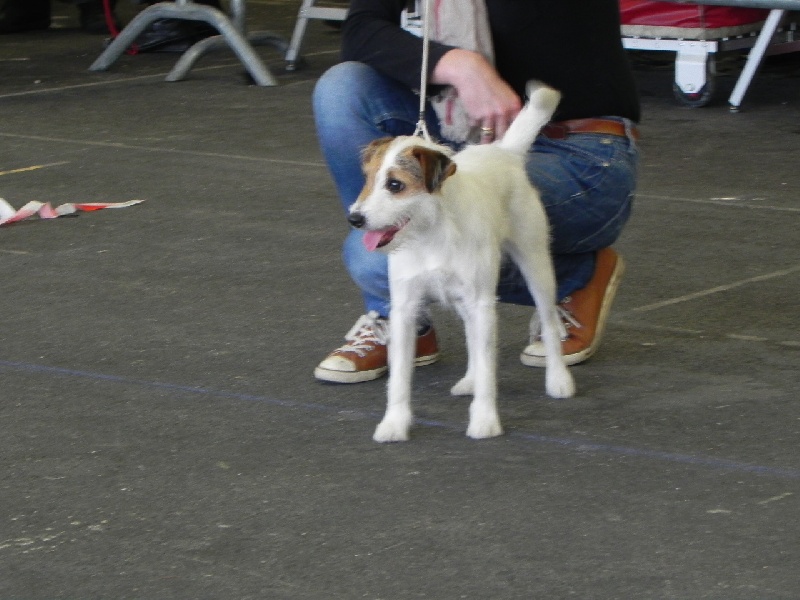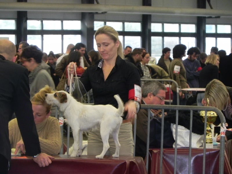 Tête typique, DCC, Bon oeil, oreilles et fouet bien implantées, bien proportionnée et compacte, bonne qualité poil, allure énergique, bien présentéeMeilleur Jeune