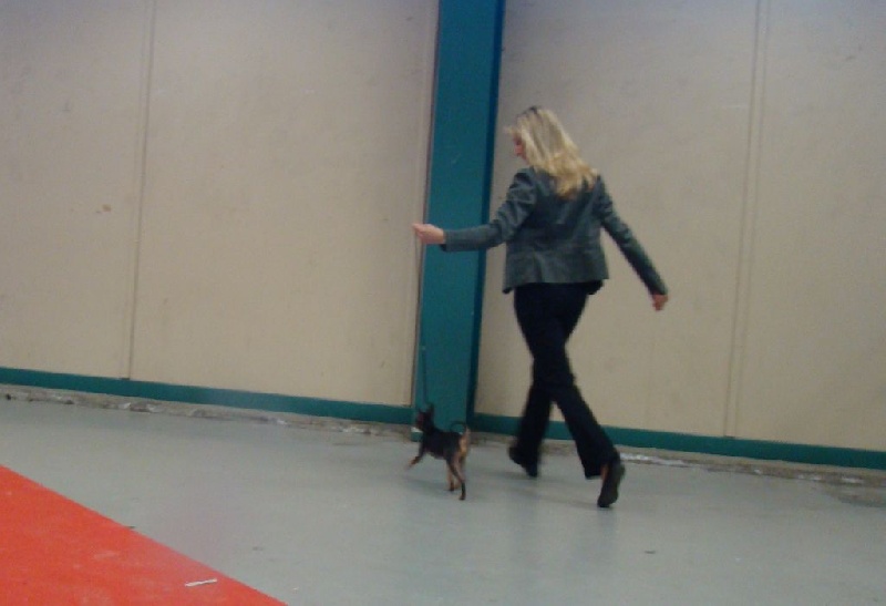 En classe Jeune (pratiquement 11 mois) "Jolie tête, oreilles bien portées, tête bien ciselée, bon stop, très bonne occlusion. Bonne encolure, très bon avant main. Poitrine juvénile, excellente statique. Dos déjà bien tendu. Bonnes angulations, fouet bien inséré. Bonne forme de pieds. Très bonne poussée, démarche de jeune à travailler."