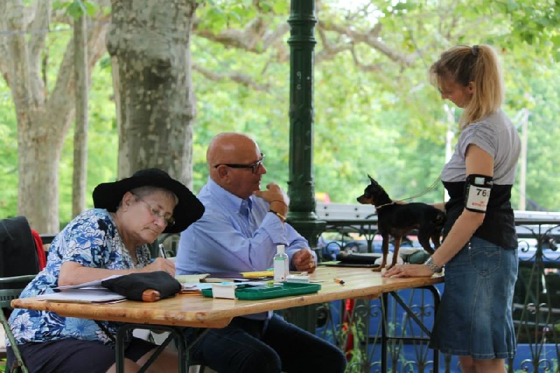 Classe Intermédiaire : "noir et feu, petites oreilles bien placée, excellente forme de tête excellente denture, œil de bonne forme, excellente qualité de poil, antérieur bien parallèles, beaucoup de substance, bon équilibre, chien bien dans le format, bonne construction équilibrée, joli posture en statique. Mouvement typique"