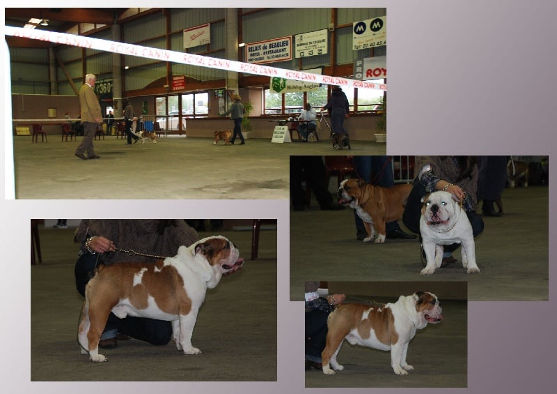 Fauve à panachure blanche.En excellente condition. Chien compact.Tête avec une bonne expression typique.Cou un peu court, yeux bien foncés, oreilles en roses, mandibule un peu étroite, bonne ossature, bonne ligne de dessus, bon arrière main, bons pieds.Queue en tire bouchon, serre un peu à l'avant.Excellente présentation