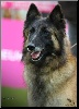 4ans. DCC. Femelle de bonne taille, fauve suffisamment charbonnée actuellement en manque de fourrure, encolure correcte, garrot suffisamment sorti, dos légèrement long, bonne poitrine suffisamment descendue, bon cintré de côtes, excellentes angulations avant et arrière, pieds un peu longs, bon crâne quasi plat, stop suffisant, bon chanfrein rectiligne, bonne ossature forte, tête bien masquée, bel oeil noisette, oreilles moyennes un peu larges à la base bien portées, poitrail suffisamment éclaté, allures correctes, pourrait avoir 1 peu plus de poussée arrière.