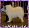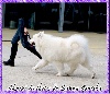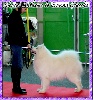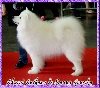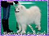 Excellent chien avec excellente expression samoyède, Oeil très expressif, Excellente tête, superbe pigmentation, babines noires, Oeil foncé, Excellentes épaules, Aplombs, Pieds, Chien compact, Excellente impulsion, Fouet bien porté, Excellentes angulations et jarrets, Mouvement et posture corrects.
