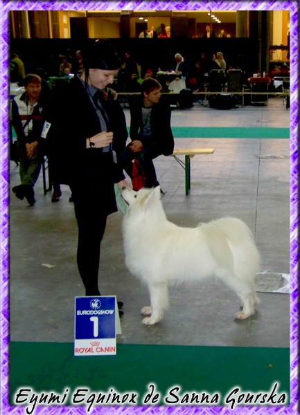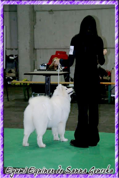 Très jeune modèle bien féminine, très bien proportionnée, Bon oeil, Bonne sortie d'encolure, Très bonne ossature, pieds pourraient être plus compacts, Poitrine de jeune, Bonnes angulations de l'arrière-main, Mouvement régulier.BIS 3 classe Elevage avec Ewina Ekaja de Sanna Gourska et Epic Eylis de Sanna Gourska (propriètaire : M Manuel Deschamps).