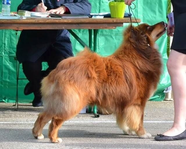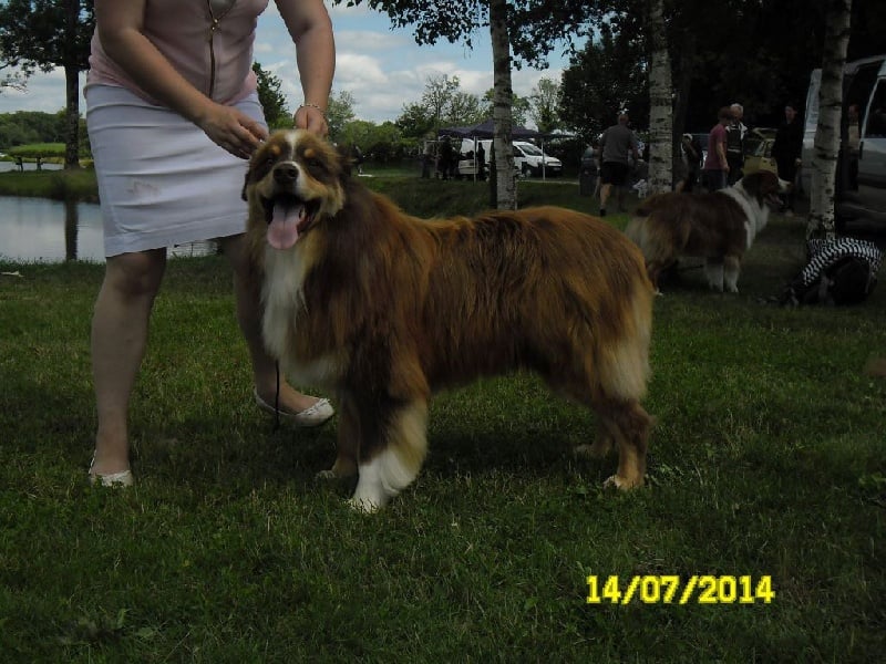 Joli sujet - masculin - excellent type - excellente encolure - excellente ligne de dessus - excellente croupe - excellente cuisses - excellent jarrets - excellente angulations .Démarche typique , très bon mouvements !!Poitrine correct , bonnes oreilles mais portées un peu trop sur le côté.format un peu long !pour sa 1ere expo five nous à remplis de fierté car il a finit 3ème excellent de sa classe ! bravo loulou