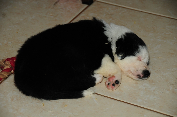 Gus fait partie des gros chiots de la portée avec ses frères Guns et Guet-apens. C'est un chien très posé, pas du tout surexcité avec une tête belle et particulière avec sa demi face blanche. Il est parti vivre dans les Alpes maritimes dans une grande propriété.