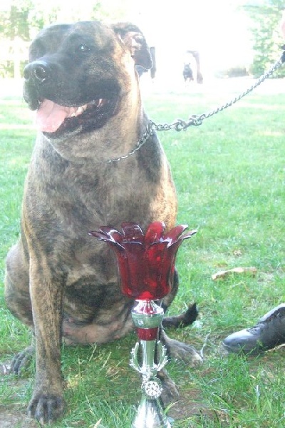 DCC Bon proportion exc oeil Bien pigmenté Oreille B implanté mal portéExc Dos assez tendu exc poitrailSurchage pondéral TB applomb eng posterieure suffisanteTB mouvement
