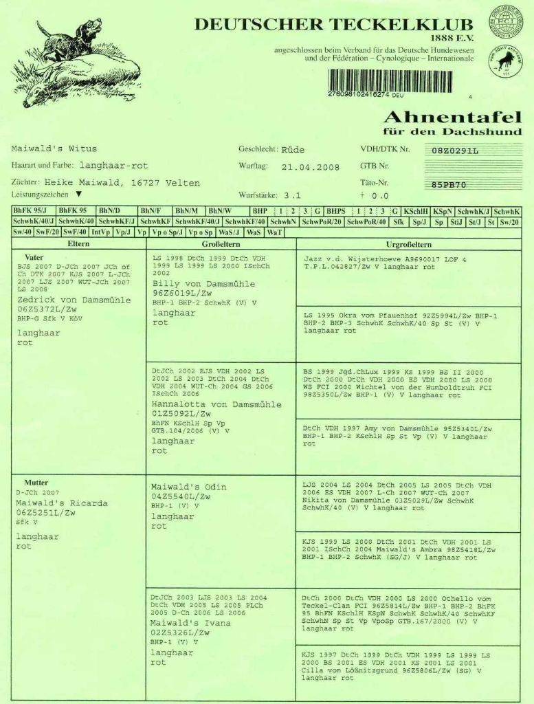 Pédigree de CH. maiwald's Witus