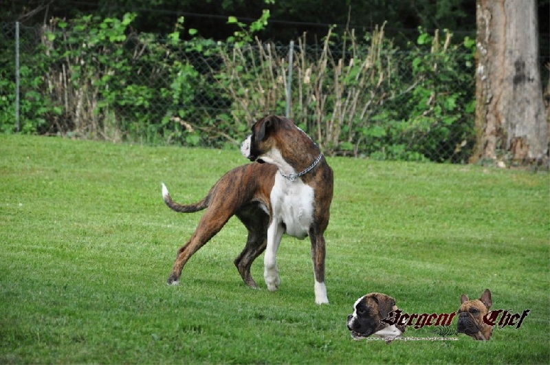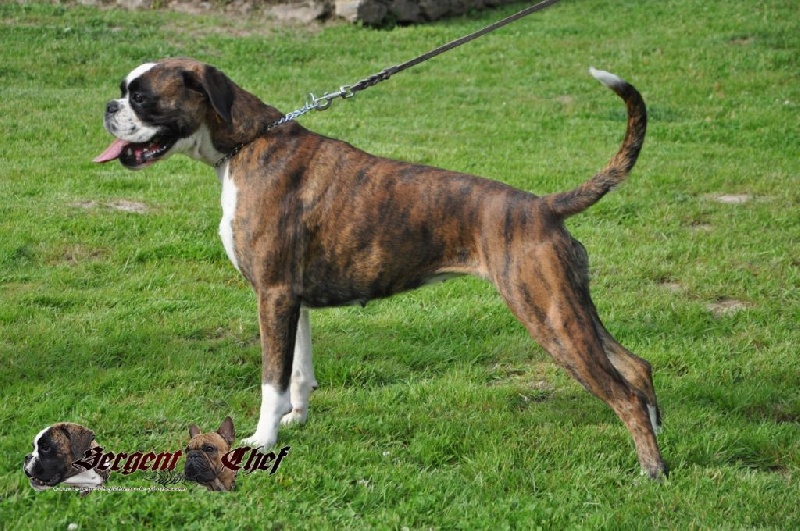 Taille moyenne - Régulier sur bringé marquée en blanc - Bon type de tête au crâne bien formé - Stop marqué (museau correct est un peu creux sous les yeux) - Yeux sombres - Denture moyennement large et régulière - Carré - Bonne ossature - Encolure correcte - Av/main correcte - Bonne ar/mainLes allure sont à travailler (Pendant les allures, Hermione sautait....)