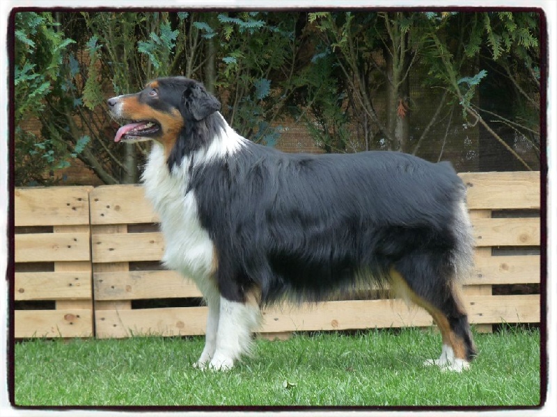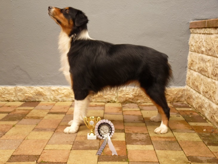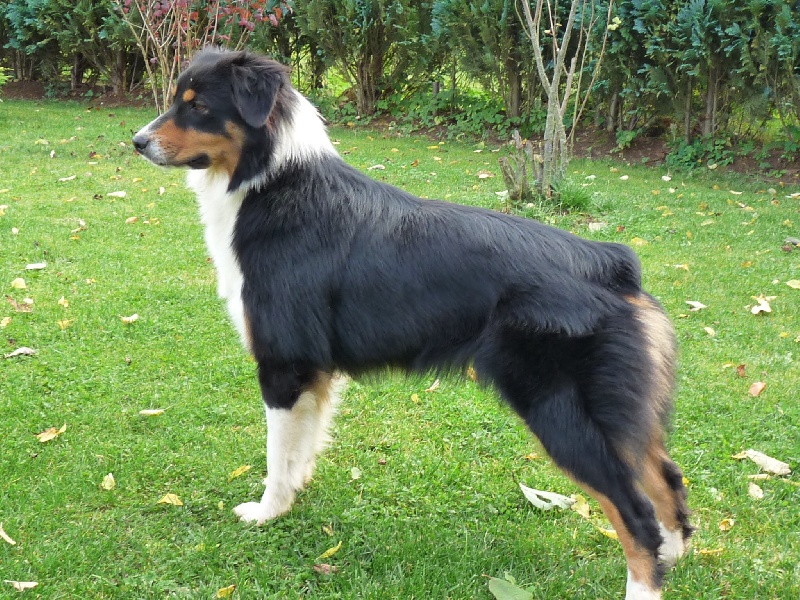 Dentition correcte - Femelle féminine - Tête excellent - Ligne dorsale, proportions, angulations, pieds et robeExcellent - Poitrine TB - Allure correcte