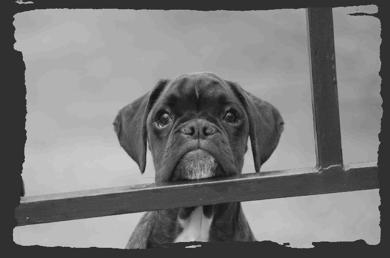 Chien Boxer Heaven folly des Jardins de Passiflore