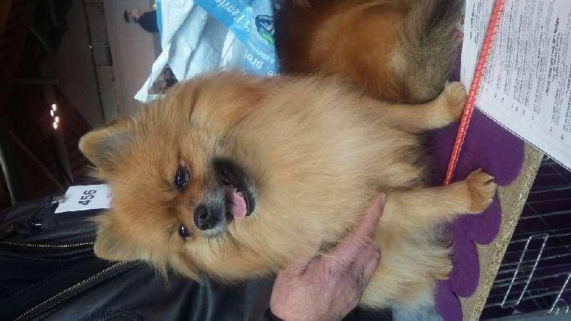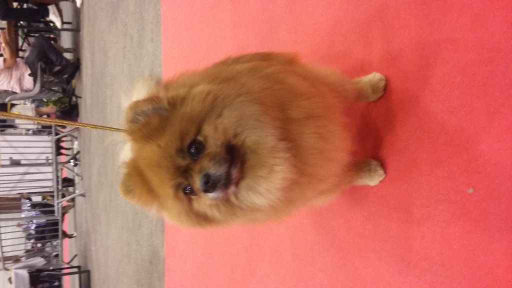 Jolie sujet, Bien propotionné, en bonne condition, Belle couleur orange soutenue, Dentition correct, oeil foncé en amande, belles petites oreilles en triangle, Coude bien appliqué, AR bien musclé, marche bien.Meilleur Jeune, Meilleur de Race.