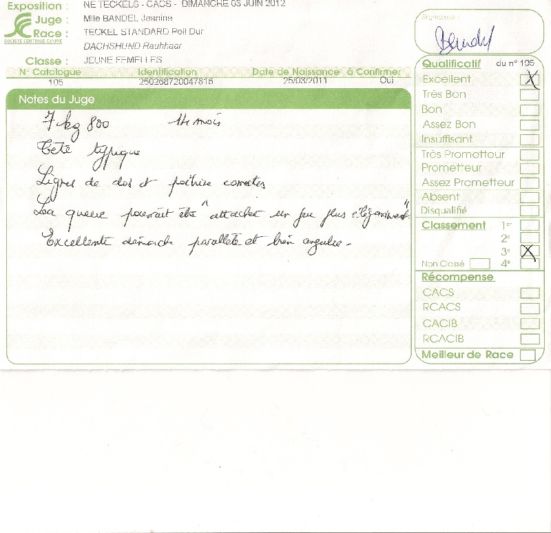 14 mois, 7,8kgTête typiqueLignes de dos et poitrine correctes, la queue pourrait être "attachée un peu plus élégamment".Excellente démarche parallèle et bien angulée.