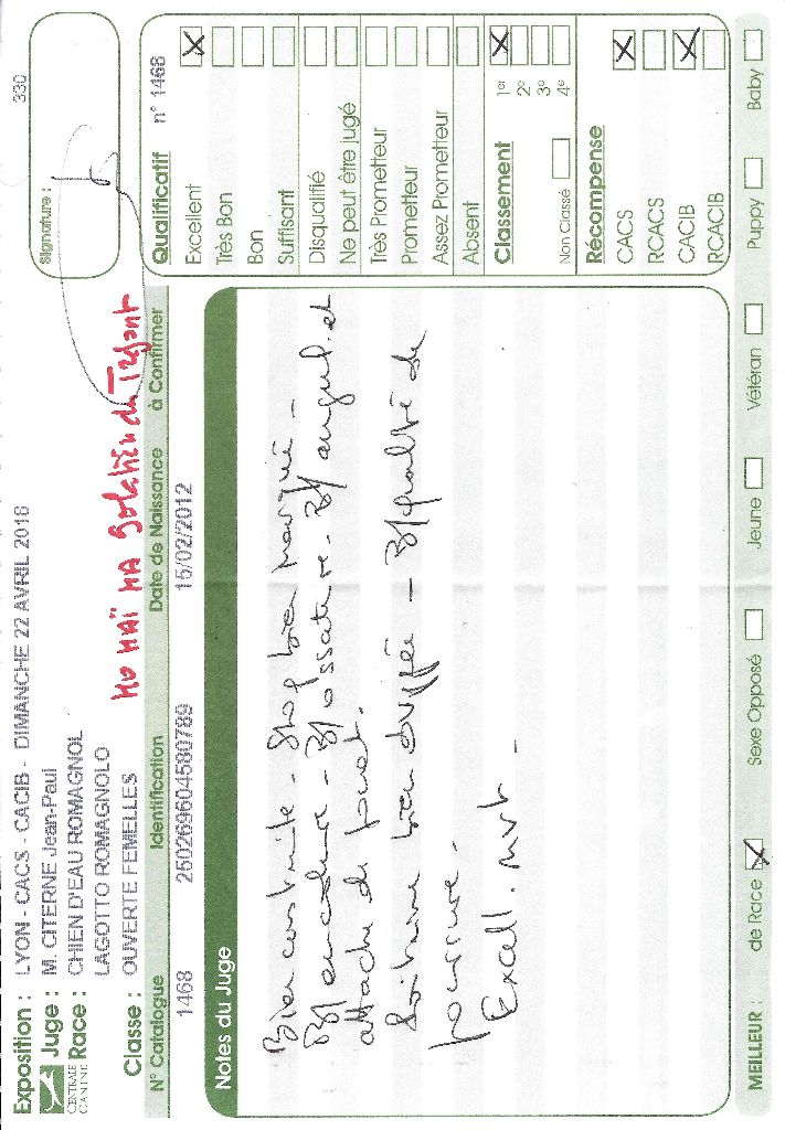 Chien Lagotto Romagnolo CH. Ho hai ha Golatière du Trépont