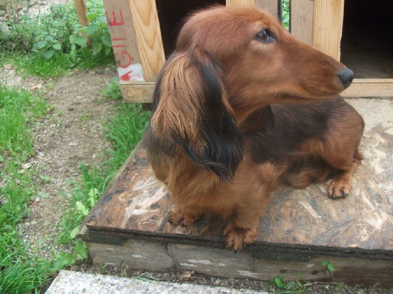 Chien Teckel poil long Hildegarde du Clos Espoir de Reve