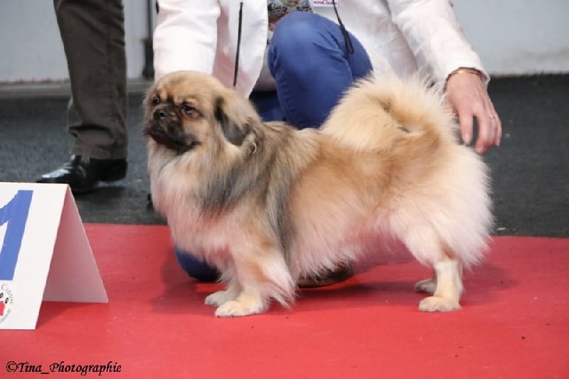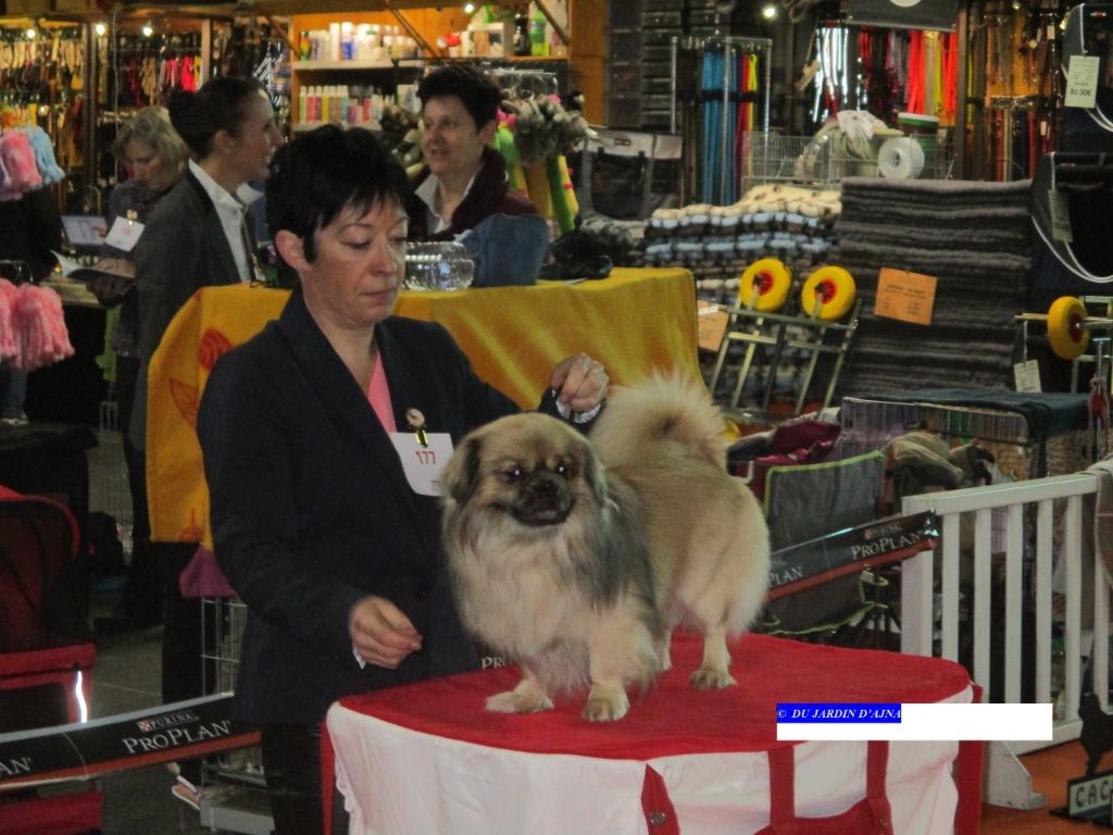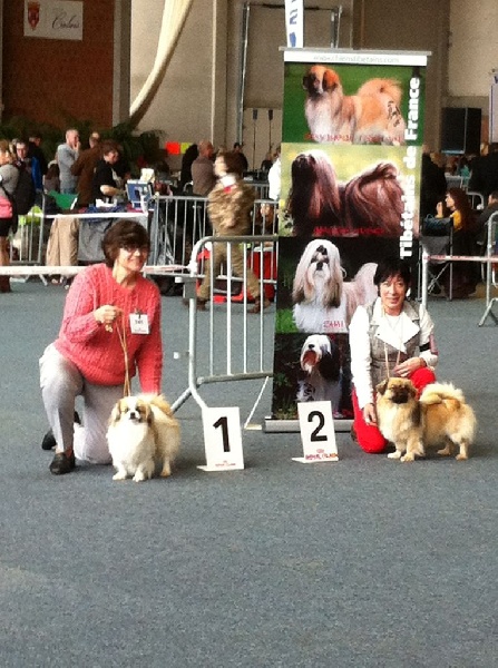 Jeune mâle masculin, tête Excell;, Dentition correct ; ligne dorsale bonne, Angulation et poitrine Excell., pieds et queue correct, Robe Ecell., Chien Typique." Cette fois c'est moi le Premier... Hevajra est 2ème hi.hi.hi.hi..."