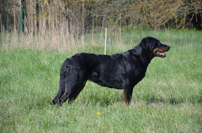 Plus posée que son frère, elle reste quand même toujours attentive à tout. Elle travaille également en obéissance et au mordant. Elle est rapidement devenue la femelle n°1 de la meute.