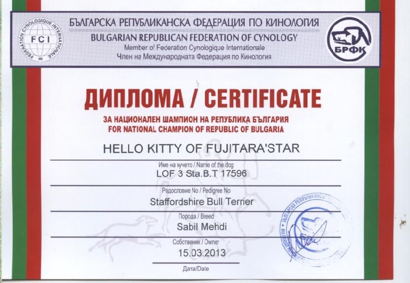 - 2x 1ere Exc, 2x CAC, 1x CACIB, champion de Bulgarie