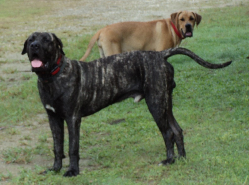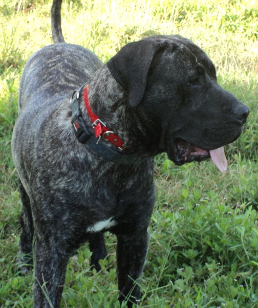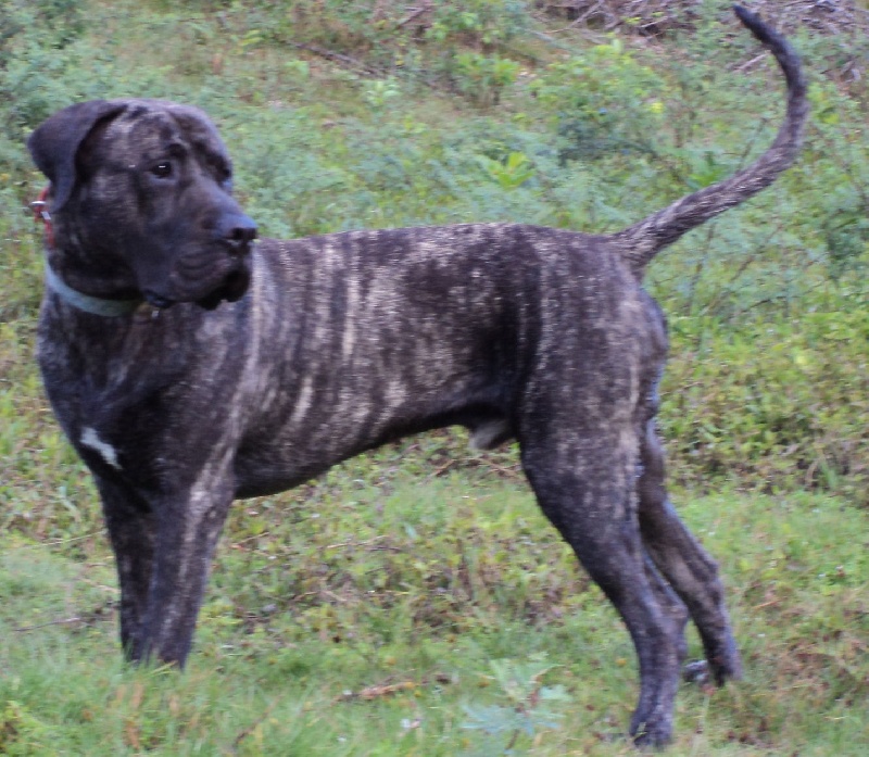 HADOK of Dogo Paradise est un grand et gros gabarit, puisqu'à 10 mois il mesure 66 cm au garrot et pèse 55 kg. Il présente une robe très originale avec deux cotés bringés différemment. Il a une condition cardio-respiratoire exeptionnelle, car entraîné par un Malinois. De caractère très doux, tranquille, assure bien la garde, aime les enfants, attaque si nécessaire. A sa 1ère présentation à l'expo Nationale de Guadeloupe 2012, il a été jugé "Très Prometteur", précédé par HULKO de la Huella del Presa Canario, fils de FREYA of Dogo Paradise.