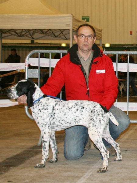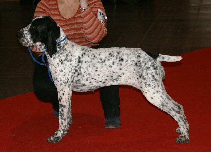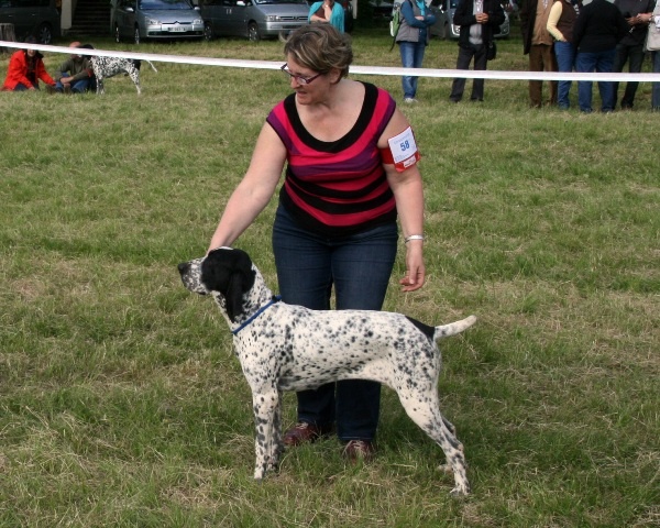 exc sujet qui se présente bien avec une tête typique de la race et bien proportionnéeexc dessus, dessous, et aplombsDémarche correcte.