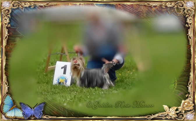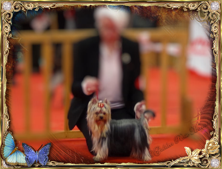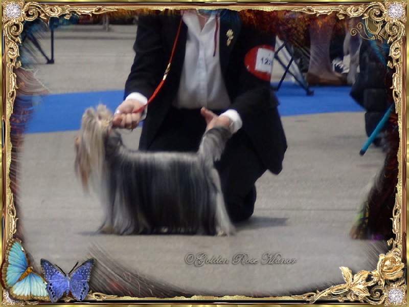 Exc tête, yeux bonne forme, très bonne machoire, queue bien insérée et bien portéeExc nature de poil, couleur bien en placeExc démarche
