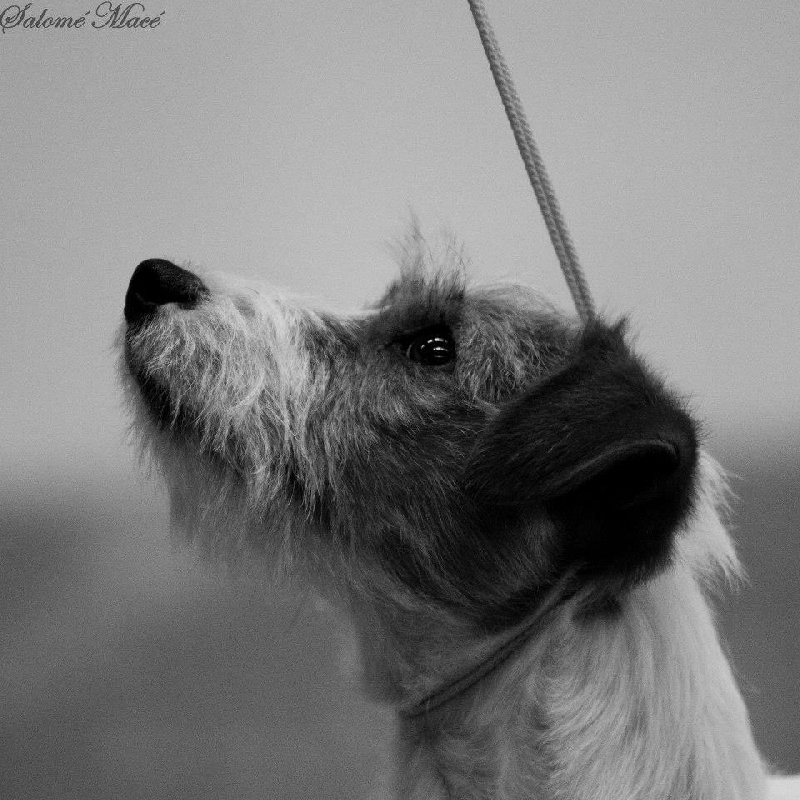 très jolie têteEXC couleur des yeux EXC oreille DCC EXC pigmentation EXC épaule applombs et pieds EXC ligne de dessus fouet et attache de fouet30-41EXC poil dur cuisse muscléeTB arrière mainEXC mouvement très présent dans le ringtricote très légèrement à la marche