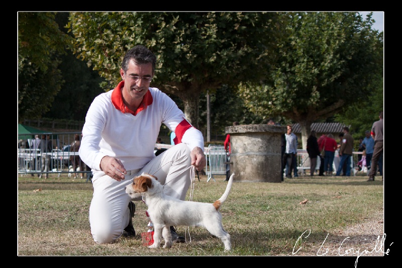 DCC jolie tête bon stop oeil EXC masque oreille B encolure bon dos EXC poitrine poitral peut encore se développer bon angulation aplomb corrects bonne ossature bonne texture de poil dur bon caractère corps proportionné dans le rectangle bonne allures fouet correct