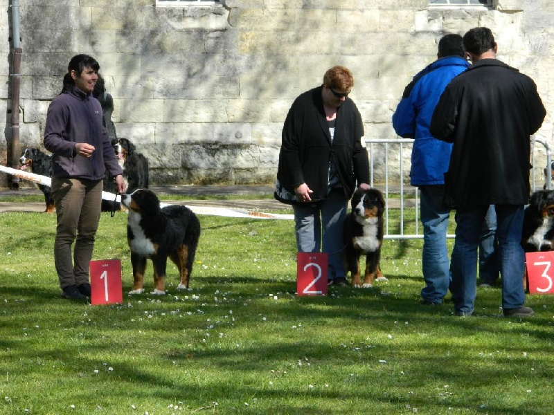 excellente taille, chienne puissante sans lourdeur, jolie tête, belle expression bernoise, bonne forme d'oeil assez coloré, excellente construction de profil, bon dessus, excellente arrière main, bonne ossature antérieur droit faible, bonne texture de poils avec touché sec, mouvement très joyeux difficile a juger