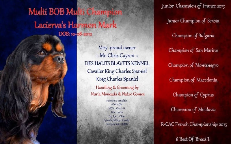 Chien Cavalier King Charles Spaniel CH. Lacierva's Harmon mark