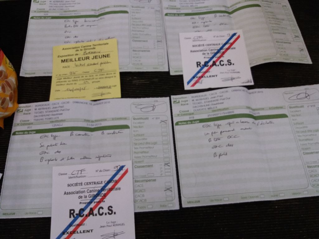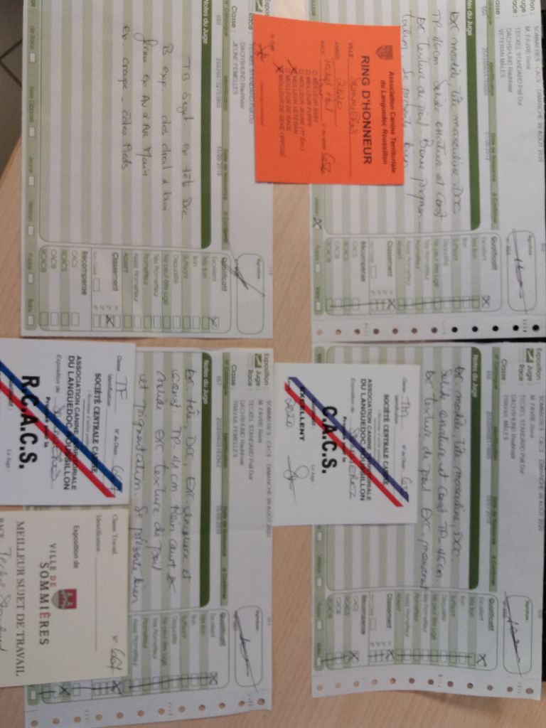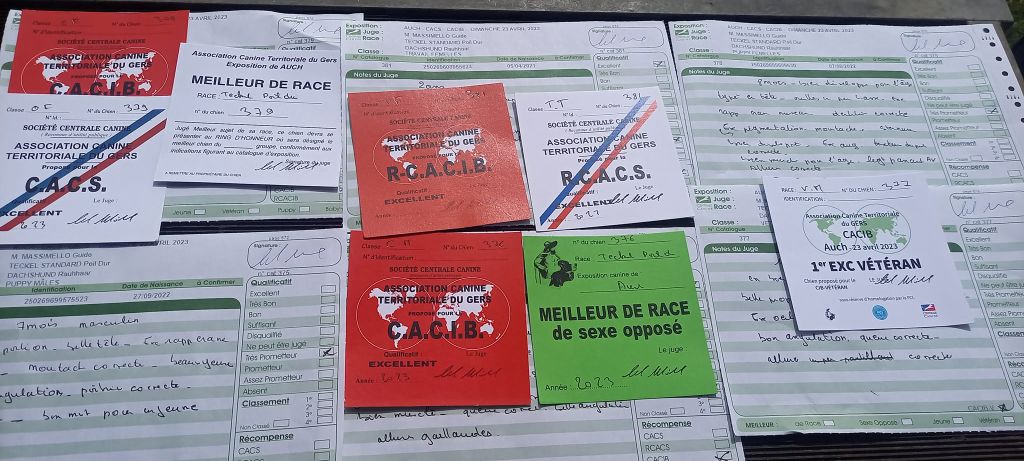 DCC - Très bonne tête - Ossature très forte - Excellente ouverture de poitrine et côte - Excellent aplombs des postérieurs - Excellent poilFouet bien attaché - Excellent caractère - Excellente présentation.