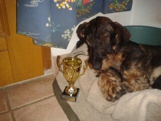 Chien puissant. Excellente tête avec un chanfrein long.Belle moustache. Excellentes oreilles bien portées. Excellente qualité de poil. Bon mouvement et port de fouet.