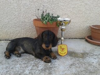 Chien Teckel poil dur CH. Haldo De La Lisque Del Caunil
