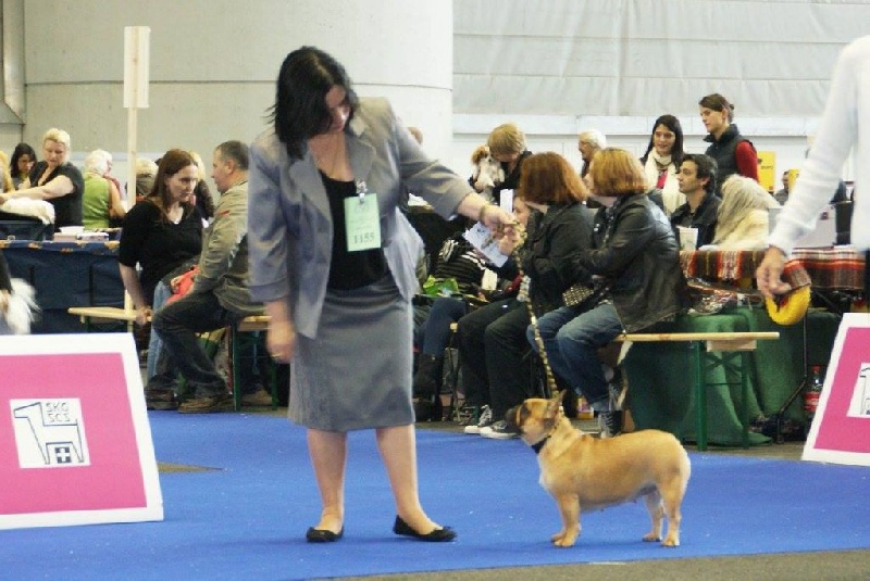 11kg3 ex format. présentée un peu enrobéesex av bien ouvertbelle poitrine, poitraildessus typiqueil faudrait un jarret plus typiquequeue vestigialeencolure puissante- très jolie têteprognathisme normalex crâne, stop, ?il, ridestruffe remouchée- chanfrein courtmâchoires recourbées avec babines bien jointives- bel ?ildémarche correcte
