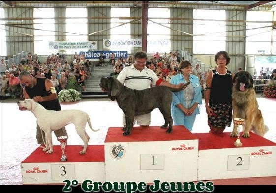 sujet tres massif, puissant, tres bonne ligne de dos, trés bonnes proportions et ? excellente ossature, trés bon aplombs avant, tres bonnes angulations et aplombs arrieres. Belle tete, bien typé, le masque pourrait etre plus sombre et la babine plus tendue. Bel oeil de forme et de couleur, excellente pigmentation. trés bon mouvement, le fouet est un peu trop gai