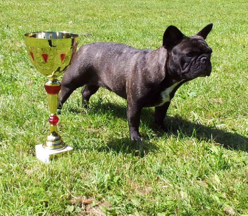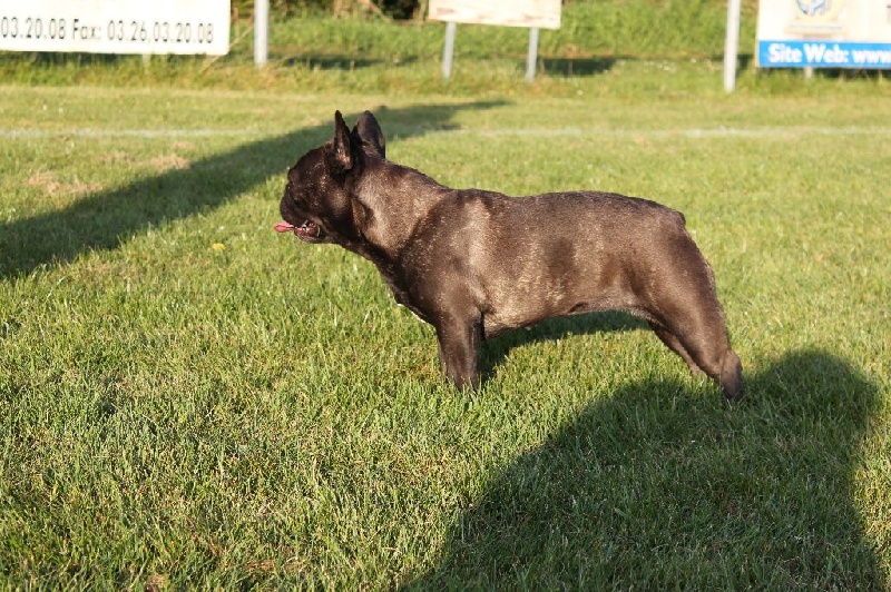 Bringé Foncé, Excellent enssemble, Avec dos de carpe, Queue courte présente, Excellente ouverture poitrail, Excellentes côtes bien descendues, Excellente tête, Excellent profil, Bons yeux, bien ronds, bien noirs, Excellent prognatisme, avec du menton, Déplacement à parfaire.