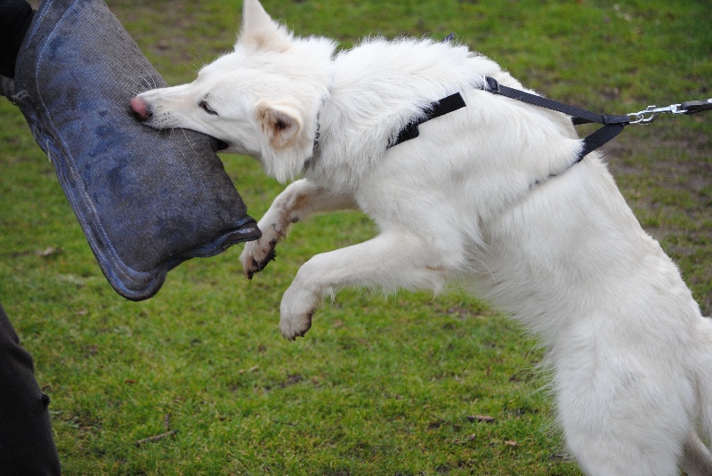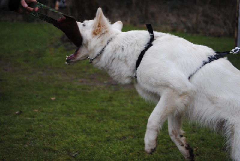 Très curieuse, elle aime beaucoup le pistage et s'est aussi initiée au mordant.