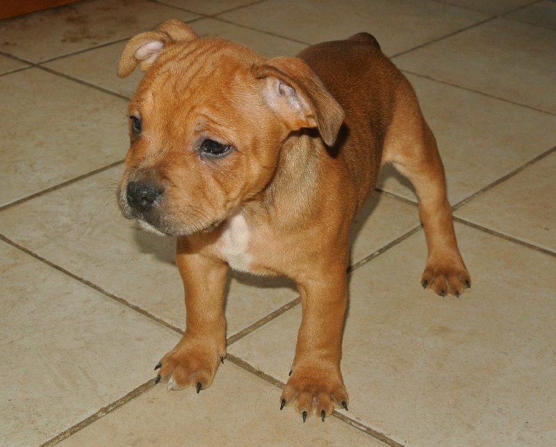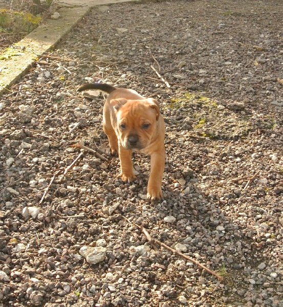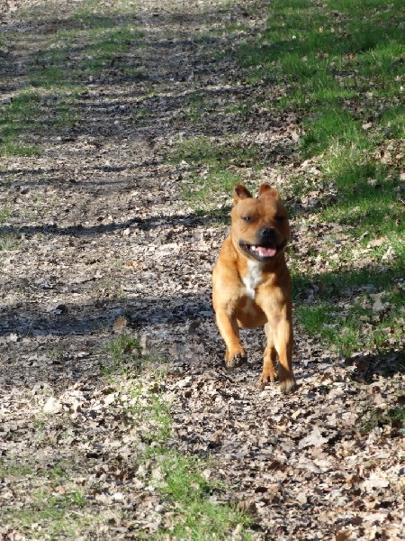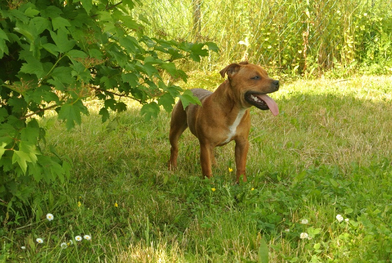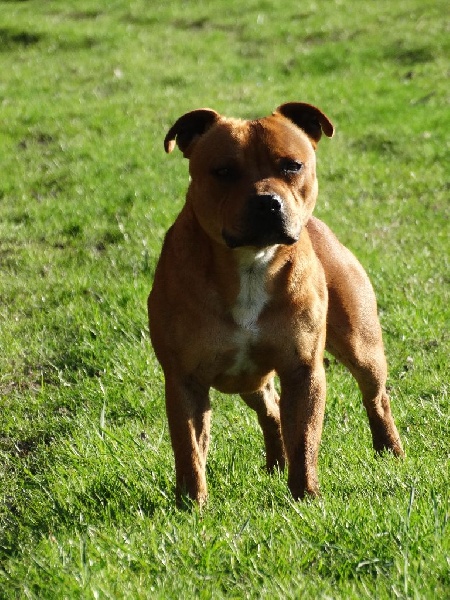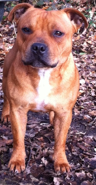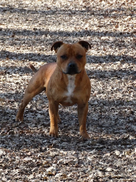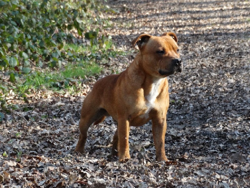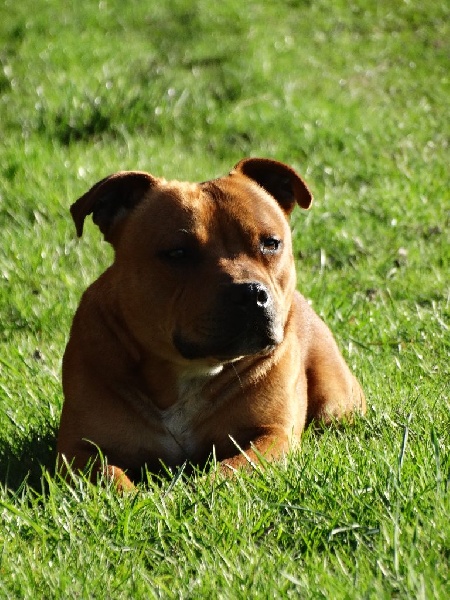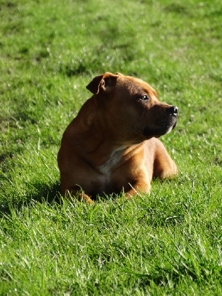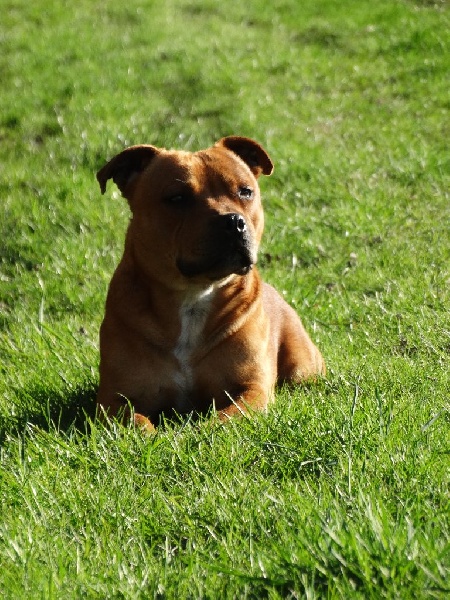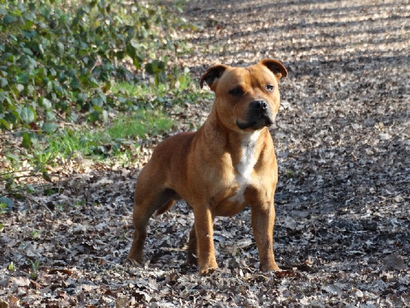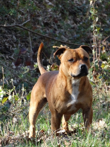 Chien Staffordshire Bull Terrier Hellboy dit hacker de l'Ica-ona