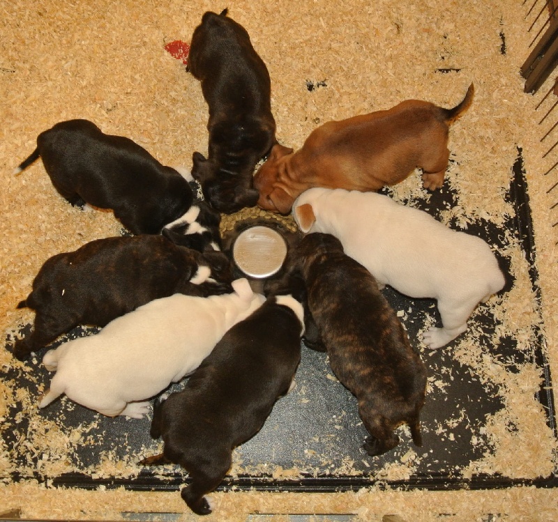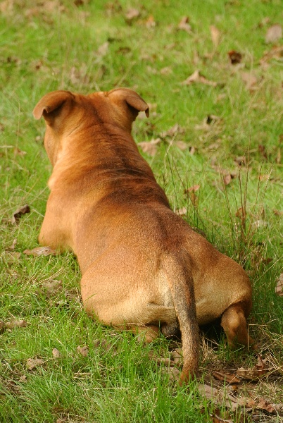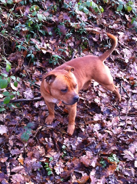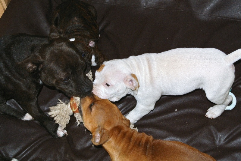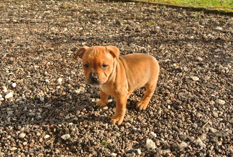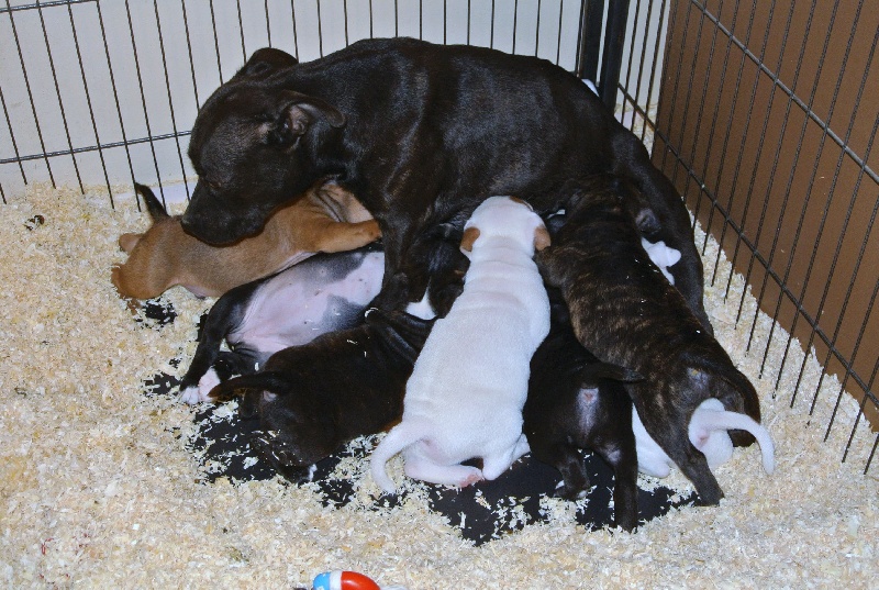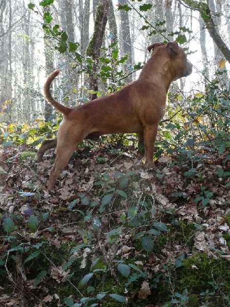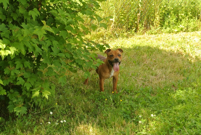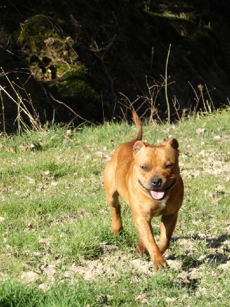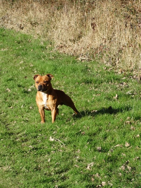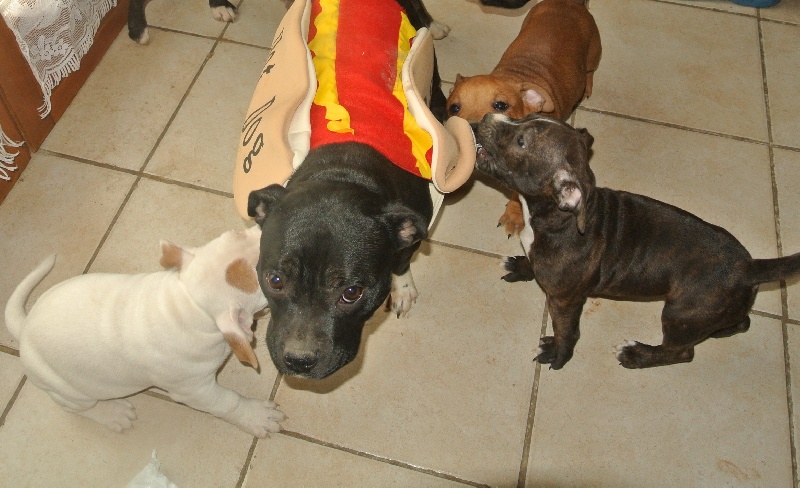 Chien Staffordshire Bull Terrier Hellboy dit hacker de l'Ica-ona