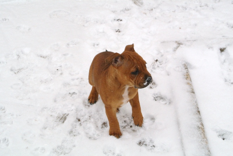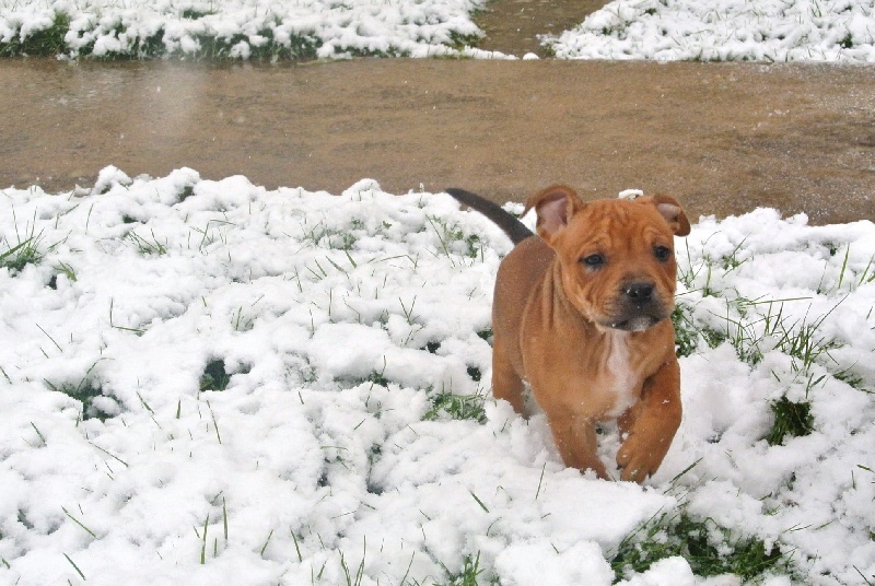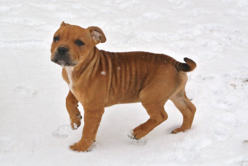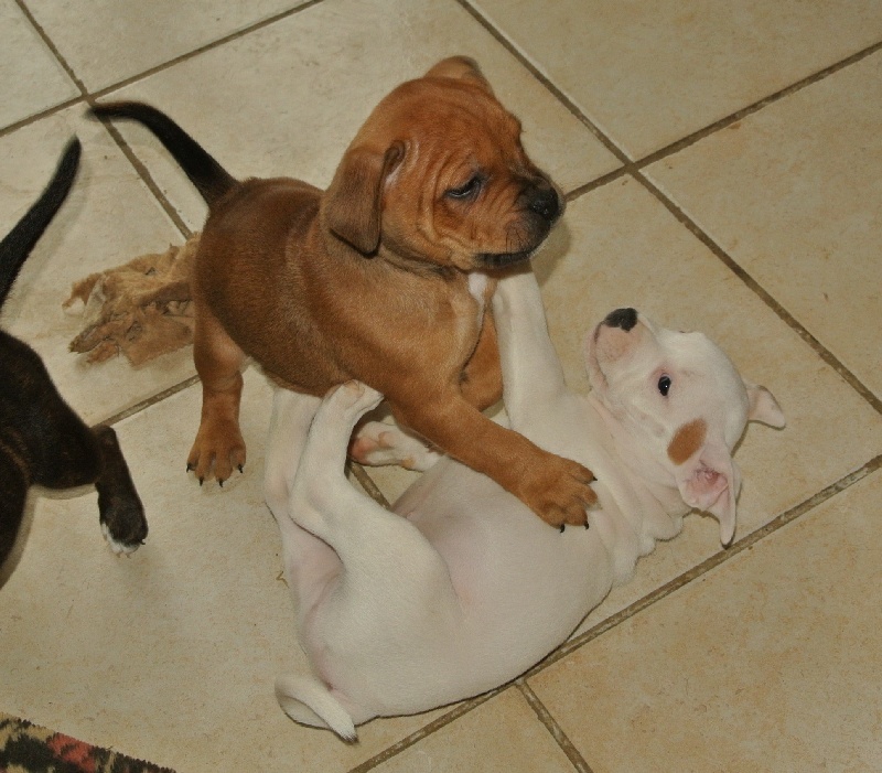 Jolie puppyTête TBDenture Exc compléte DCCOreilles bien attachés et portésChien très grosse ossature et structureRein courtCoudes, pieds, aplombs TBBonne angulation arrièreSe déplace bien